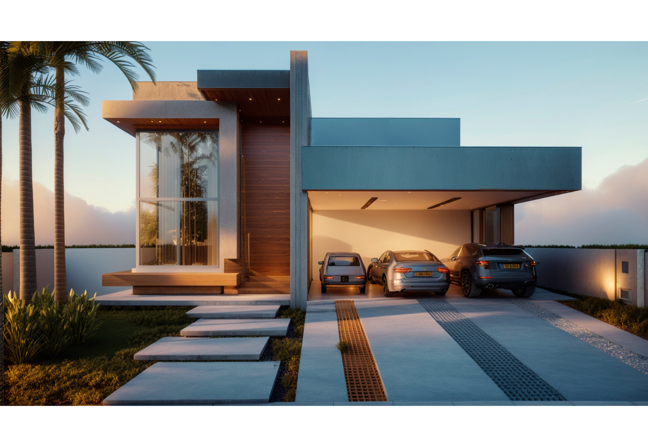 Ao entrar, você é recebido por um espaço onde a luz natural flui através das grandes aberturas, iluminando cada canto com suavidade. O pé direito duplo na área social amplia o ambiente, proporcionando uma sensação de espaço e liberdade. As linhas retas e a linguagem contemporânea do design criam uma estética limpa e elegante, sem excessos.